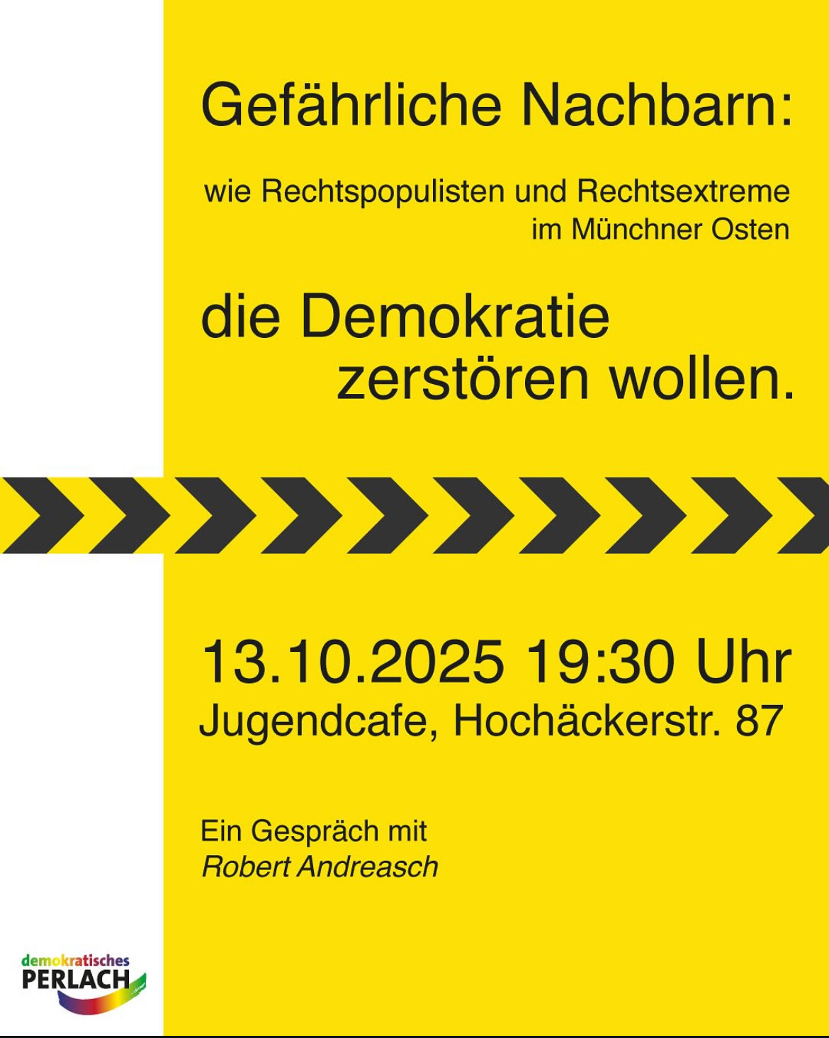 Demokratisches Perlach lädt engagierte Menschen aller Altersgruppen aus der Nachbarschaft ein, sich für ein freundliches, weltoffenes, inklusives, tolerantes und demokratisches Miteinander einzusetzen.