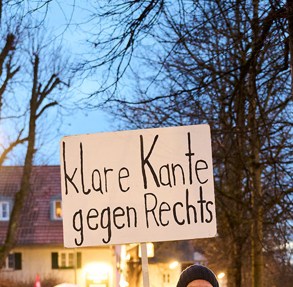 Gegen die Liveübertragung der Konversation zwischen Alice Weidel und Elon Musk gabs eine Mahnwache.
